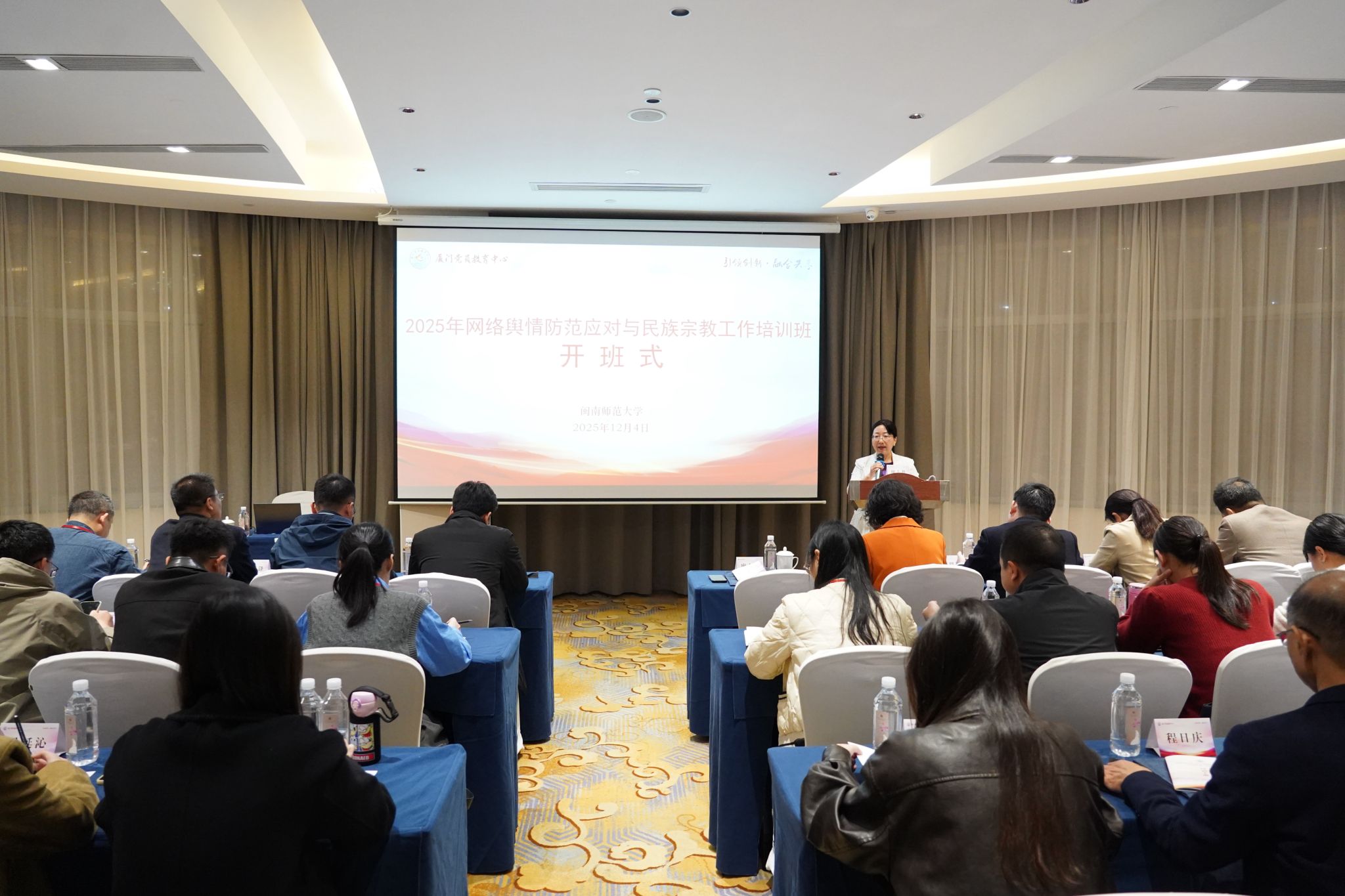 廖志丹在讲话中强调,举办这次培训班是深入贯彻落实习近平总书记关于网络生态治理的重要论述和习近平总书记关于宗教工作的重要论述,进一步提升干部队伍政治素养、理论素养和实战能力的重要举措。培训班学员要提升政治站位,站在战略和全局高度深刻认识网络舆情工作和民族宗教工作对于维护学校意识形态安全、保障学校事业高质量发展、服务地方经济社会发展大局的重要意义;要把握培训重点,着力提升风险预见与监测发现能力、分析研判与评估能力、回应引导与危机处置能力,强化理论武装与政策把握能力、调查研究与情况掌握能力,进一步提高网络舆情应对处置及宗教工作的能力和水平;要严肃培训纪律,展现出闽南师大干部良好的精神风貌和组织纪律性,坚持学思结合,加强交流互鉴,把学习成果转化为谋划工作的思路、推动工作的举措、解决问题的本领。